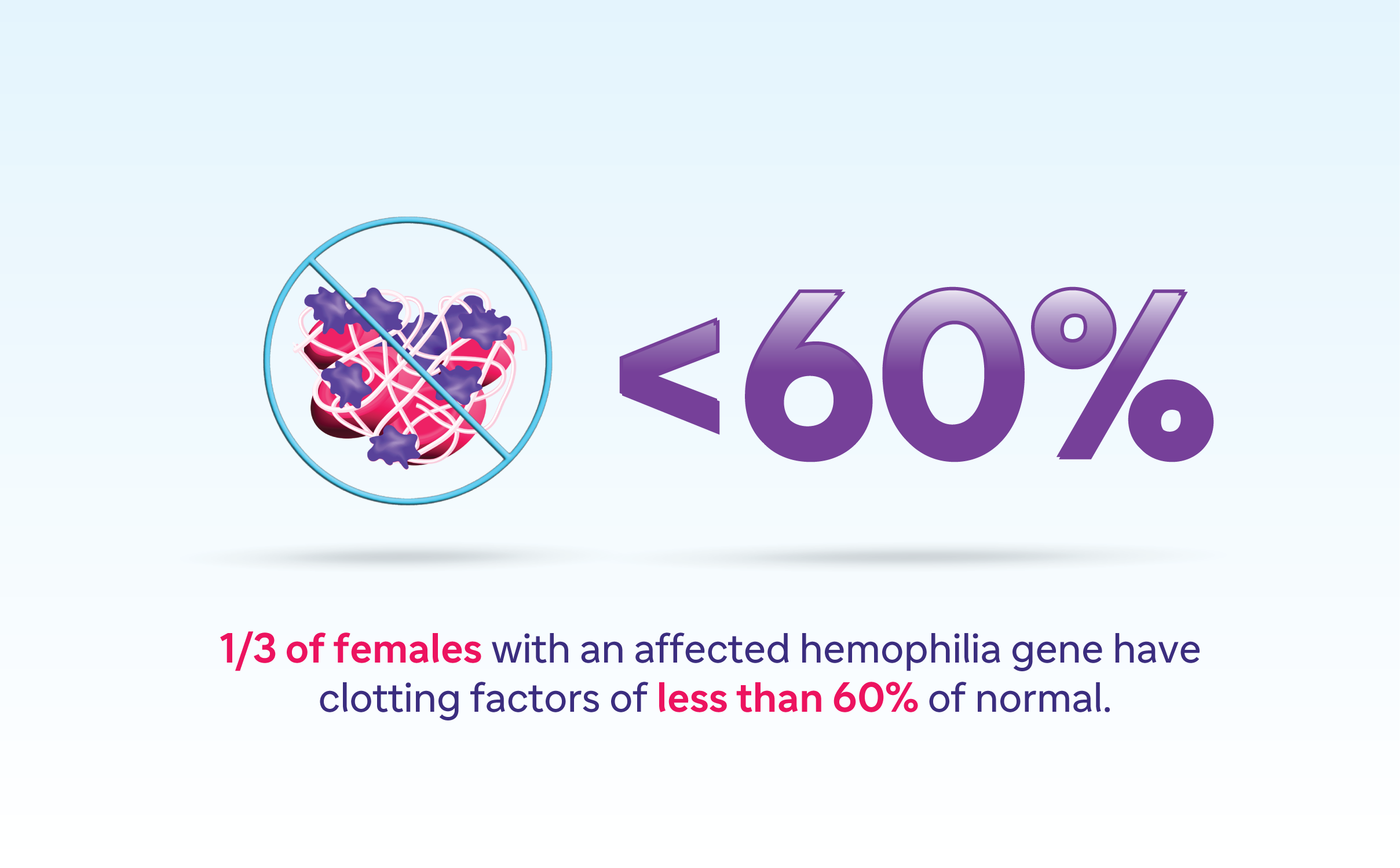 As approximately one-third of females with an affected hemophilia gene have clotting factor levels of less than 60% of normal, it is important for them to know their factor activity levels to help women and girls understand how it may impact their daily life.