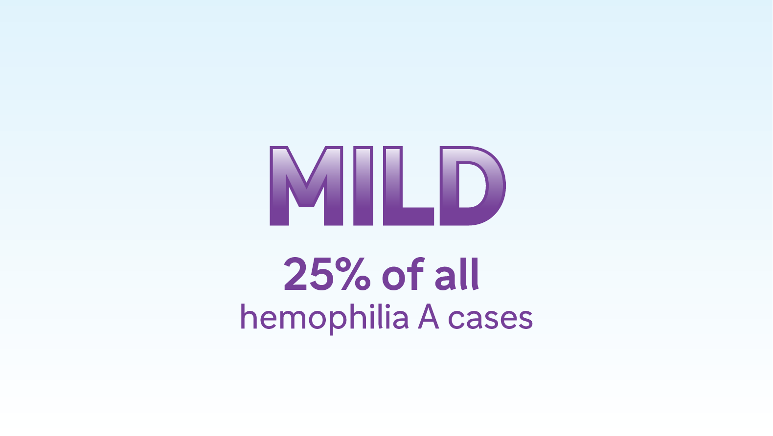 People with mild hemophilia A have Factor VIII levels that are 5% to <40%. Mild cases make up around one-quarter of all hemophilia A cases.